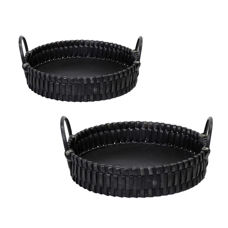Σετ 2τμχ καλάθι ψάθινο με λαβές σε μαύρο χρώμα από την ESPIEL - Διαστάσεις: Δ41x9εκ.-Δ35x9εκ.