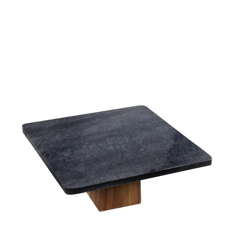 Πλατώ Σερβιρίσματος Μαρμάρινο Μαύρο-Ξύλινο Ακακίας 30x30x11εκ. ESPIEL FAV243