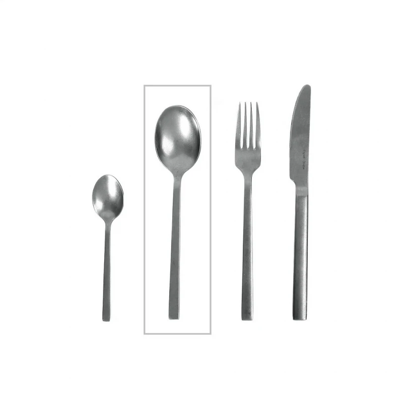 Συμπληρώστε με μοντέρνο ύφος το σερβίρισμα του φαγητού σας με το σετ φαγητού ''DIVINE'' από ανοξείδωτο ατσάλι 18/0 με μίνιμαλ γραμμές και stonewash φινίρισμα και καταπλήξτε τους καλεσμένους σας.