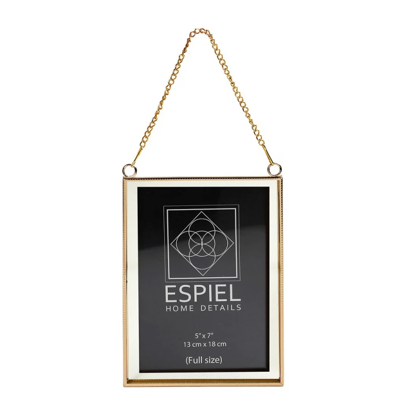 Κορνίζα κρεμαστή μεταλλική σε χρυσό χρώμα από την ESPIEL - Διαστάσεις φωτογραφίας: 20x25εκ., Διαστάσεις κορνίζας: 20,5x0,5x25,5εκ.