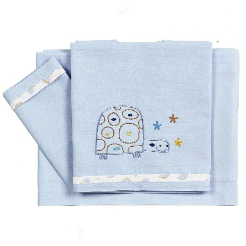 Σετ Σεντόνια 3τμχ Βαμβακερά Κούνιας 100x160εκ. Tortoise Σιέλ 20242