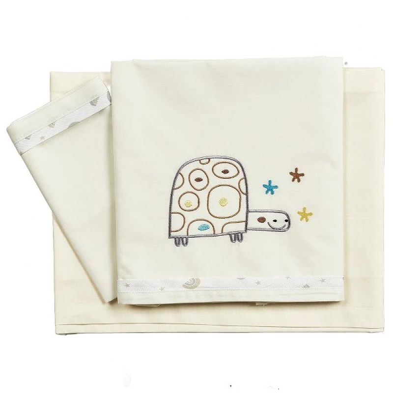 Σετ Σεντόνια 3τμχ Βαμβακερά Κούνιας 100x160εκ. Tortoise Εκρού 20243