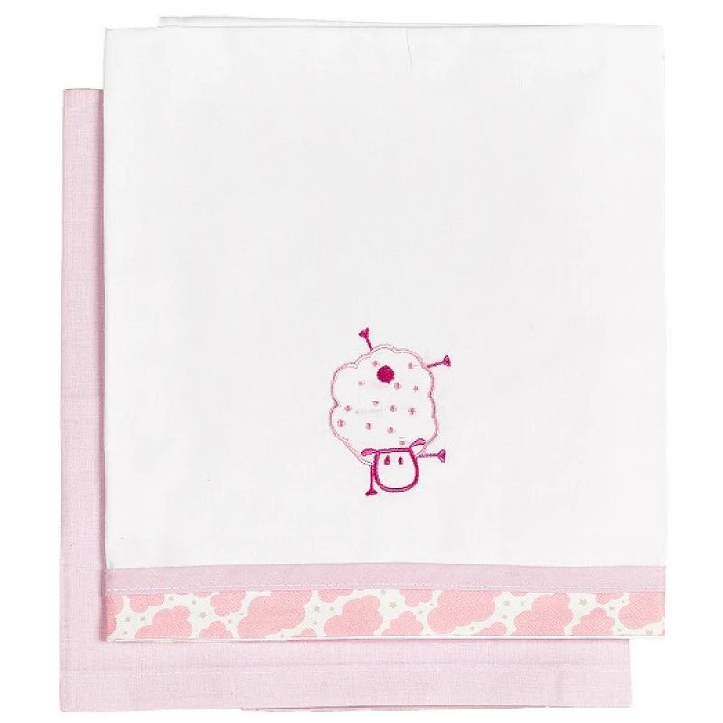Σετ Σεντόνια 2τμχ Βαμβακερά Λίκνου 80x110εκ. Sheep Ροζ 23091