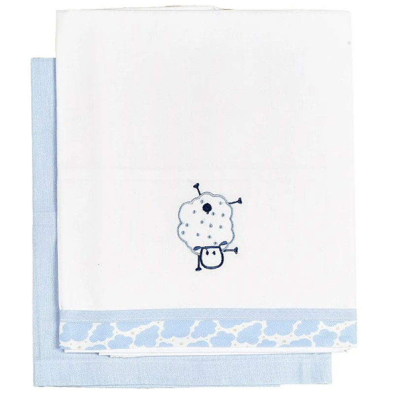 Σετ Σεντόνια 2τμχ Βαμβακερά Λίκνου 80x110εκ. Sheep Σιέλ 23092