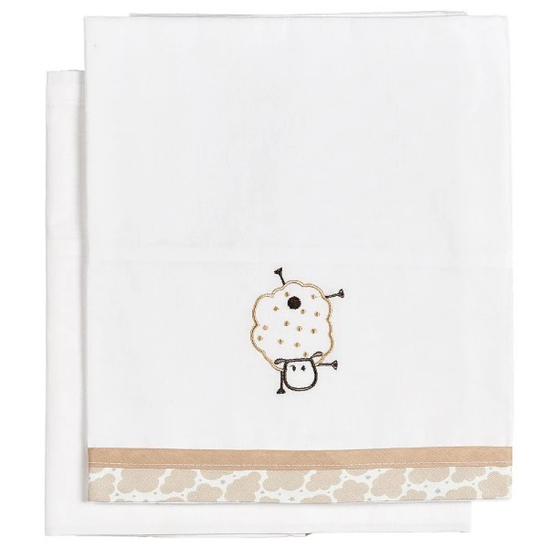 Σετ Σεντόνια 2τμχ Βαμβακερά Λίκνου 80x110εκ. Sheep Εκρού 23093