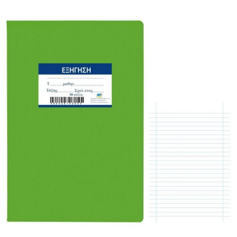 Τετράδιο εξήγηση 50 φύλλων σε πράσινο χρώμα από την Justnote - Διαστάσεις: 17x25εκ. - Η ελάχιστη ποσότητα αγοράς για αυτό το προιόν είναι 10τμχ.