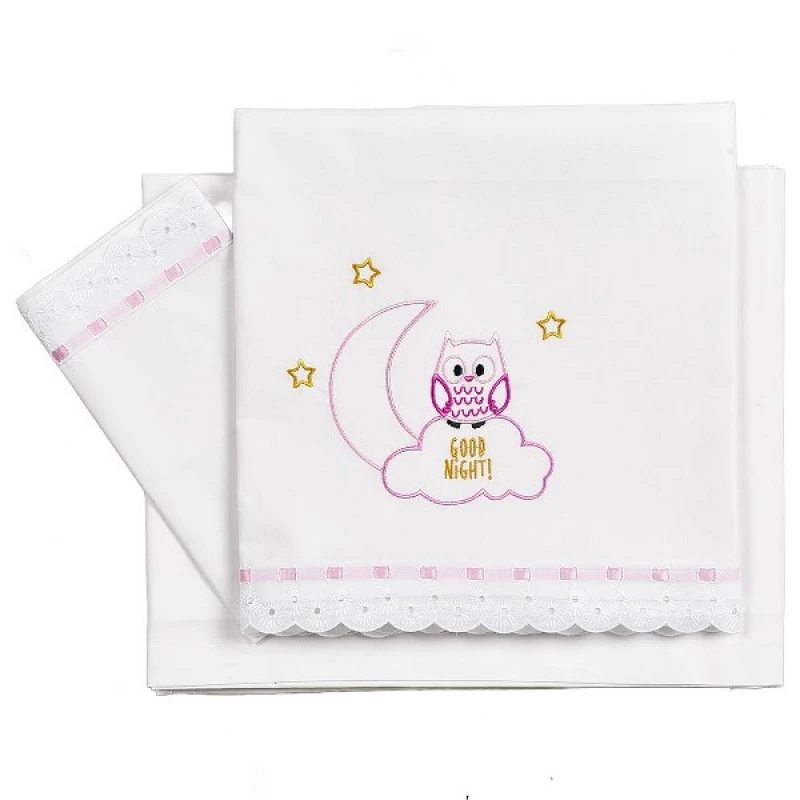 Σετ Σεντόνια Βαμβακερά Κούνιας 120x180εκ. Owl Ροζ 26061