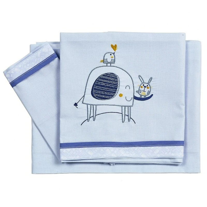 Σετ σεντόνια κούνιας, 100% βαμβακερά, ελληνικής κατασκευής από την εταιρεία Ο Κόσμος του Μωρού - Το σετ περιλαμβάνει: 2 σεντόνια 120x180εκ. και 1 μαξιλαροθήκη 37x45εκ.