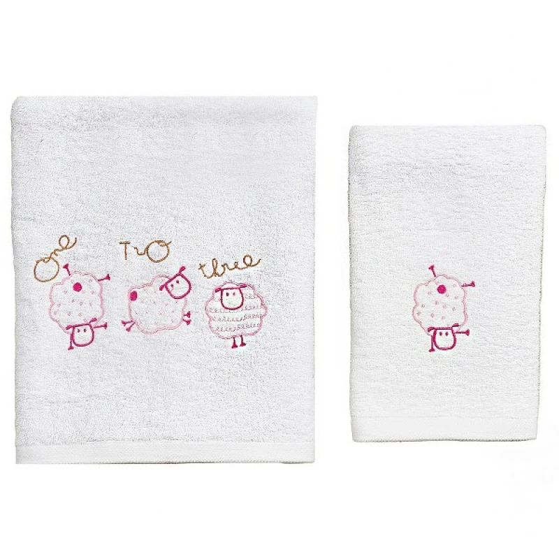 Σετ Πετσέτες 2τμχ Μπεμπέ Βαμβακερές Sheep Ροζ 57591
