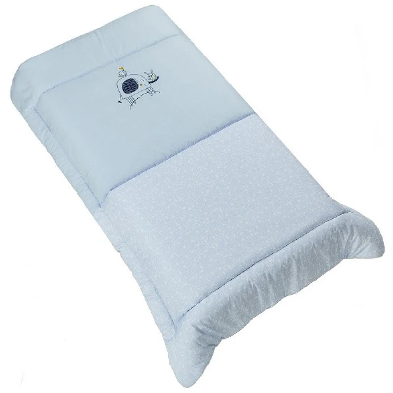 Πάπλωμα κούνιας, με επένδυση 100% βαμβακερή και γέμιση από 100% πολυεστερική βάτα, ελληνικής κατασκευής, σε σιέλ χρώμα της σειράς Baby από την εταιρεία Ο Κόσμος του Μωρού - Διαστάσεις: 110x160εκ.