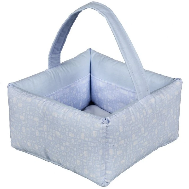 Καλαθάκι καλλυντικών ελληνικής κατασκευής, με 100% βαμβακερή επένδυση και γέμιση από 100% ψημένη πολυεστερική βάτα σε σιέλ χρώμα από την εταιρεία Ο Κόσμος του Μωρού. - Διαστάσεις: 28x28x15εκ.