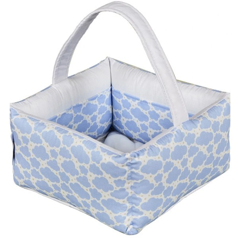 Καλαθάκι καλλυντικών ελληνικής κατασκευής, με 100% βαμβακερή επένδυση και γέμιση από 100% ψημένη πολυεστερική βάτα σε σιέλ χρώμα από την εταιρεία Ο Κόσμος του Μωρού. - Διαστάσεις: 28x28x15εκ.