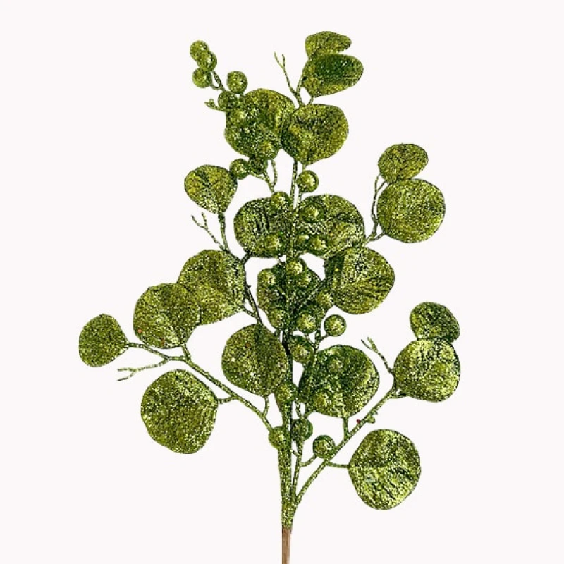 Κλαδί με πράσινα φύλλα και glitter από την Art Et Lumiere - Διαστάσεις: 55εκ. - Η ελάχιστη ποσότητα αγοράς για αυτό το προϊόν είναι 6τμχ.