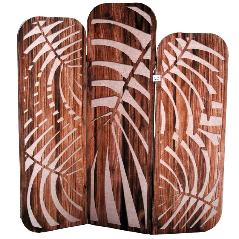 Παραβάν δερματίνης με φύλλα σε καφέ χρώμα από την Royal Art - Διαστάσεις: 150x1,8x160εκ.