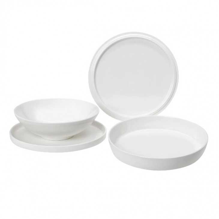 Σετ πιάτα 7τμχ (για 2 άτομα) πορσελάνης σε λευκό χρώμα από την Cryspo Trio. Το σετ περιλαμβάνει: 2 πιάτα βαθιά 20,5x6εκ., 2 πιάτα 22x44εκ., 2 πιάτα ρηχά 23εκ. και 1 πλατό πορσελάνης 23,5εκ.
