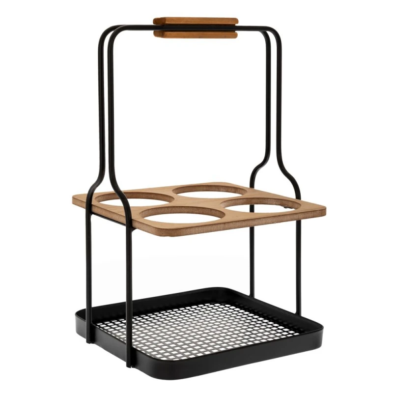 Μπουκαλοθήκη 4 θέσεων μεταλλική σε μαύρο χρώμα με ξύλινες λεπτομέρειες από την iliadis - Διαστάσεις: 25,5x24x40εκ.