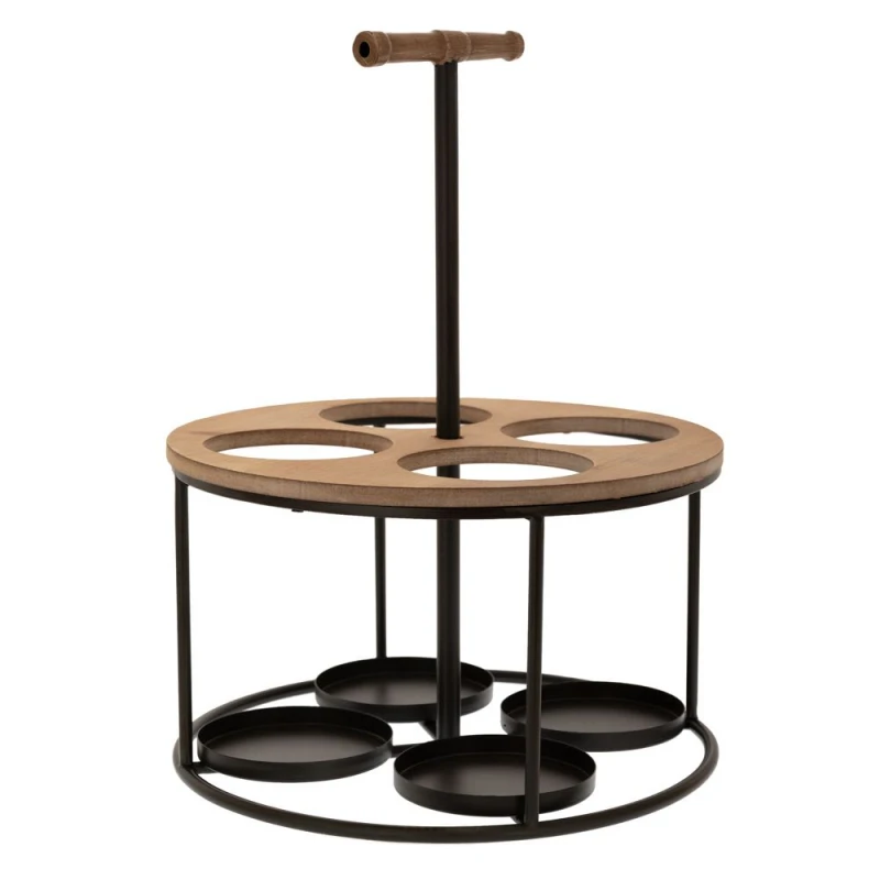 Μπουκαλοθήκη στρογγυλή 4 θέσεων μεταλλική σε μαύρο χρώμα με ξύλινες λεπτομέρειες από την iliadis - Διαστάσεις: 30x30x39,5εκ.