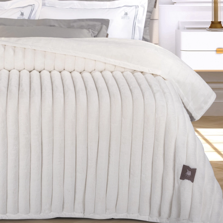 Κουβέρτα Faux Fur-Flannel Υπέρδιπλο 220x240εκ. Premium 3477 Λευκό Greenwich Polo Club