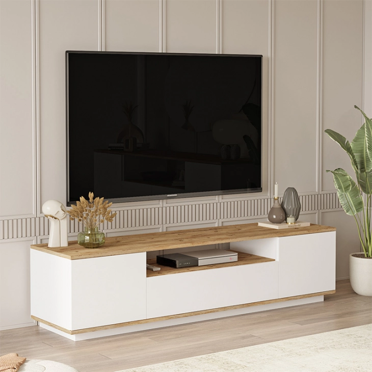Έπιπλο τηλεόρασης Soren pakoworld sonoma-λευκό 180x.44.5x44.6εκ