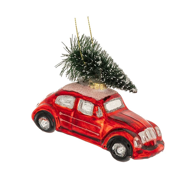 Χριστουγεννιάτικο Αυτοκίνητο Κρεμαστό Γυάλινο Κόκκινο 11x6,5εκ. iliadis 87451