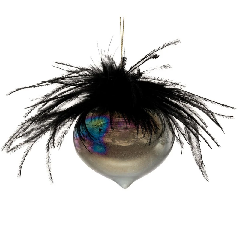 Σετ 6τμχ στολίδι κρεμαστό με πούπουλα γυάλινο σε μαύρο ιριδίζον χρώμα από την iliadis - Διαστάσεις: 8εκ.