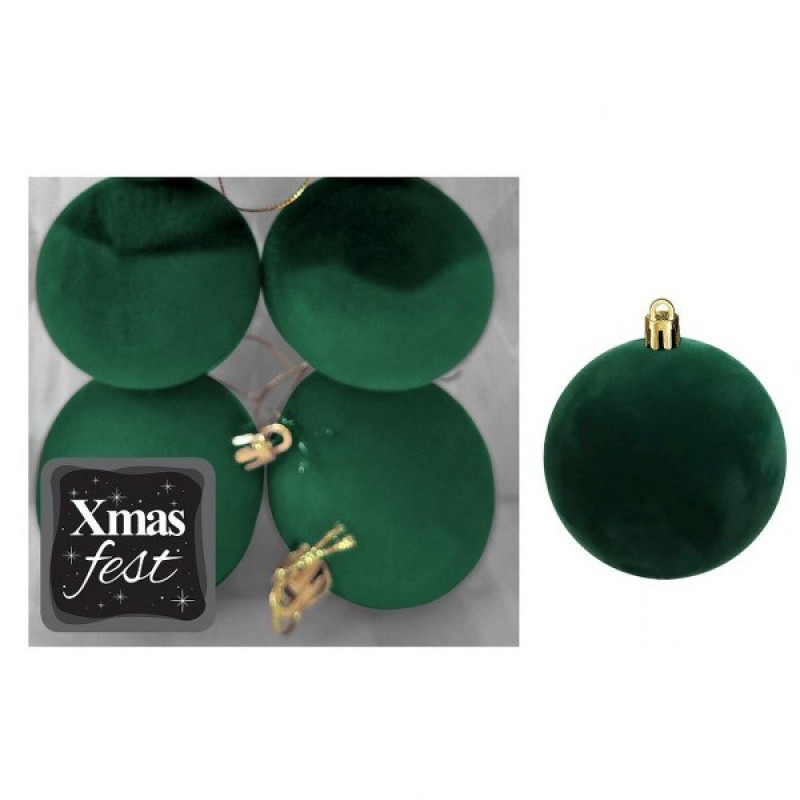 Σετ μπάλες 4 τμχ βελούδινες σε κυπαρισσί χρώμα από την Xmas fest - Διαστάσεις: Δ10εκ.