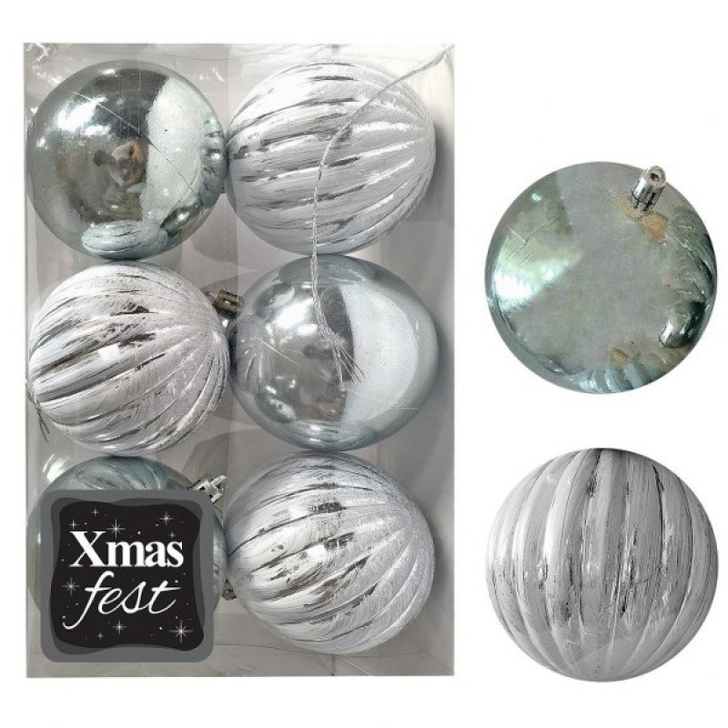 Σετ μπάλες 6 τμχ μιξ ανάγλυφες, αντικέ σε γκρι - πράσινο χρώμα από την Xmas fest - Διαστάσεις: Δ6εκ.