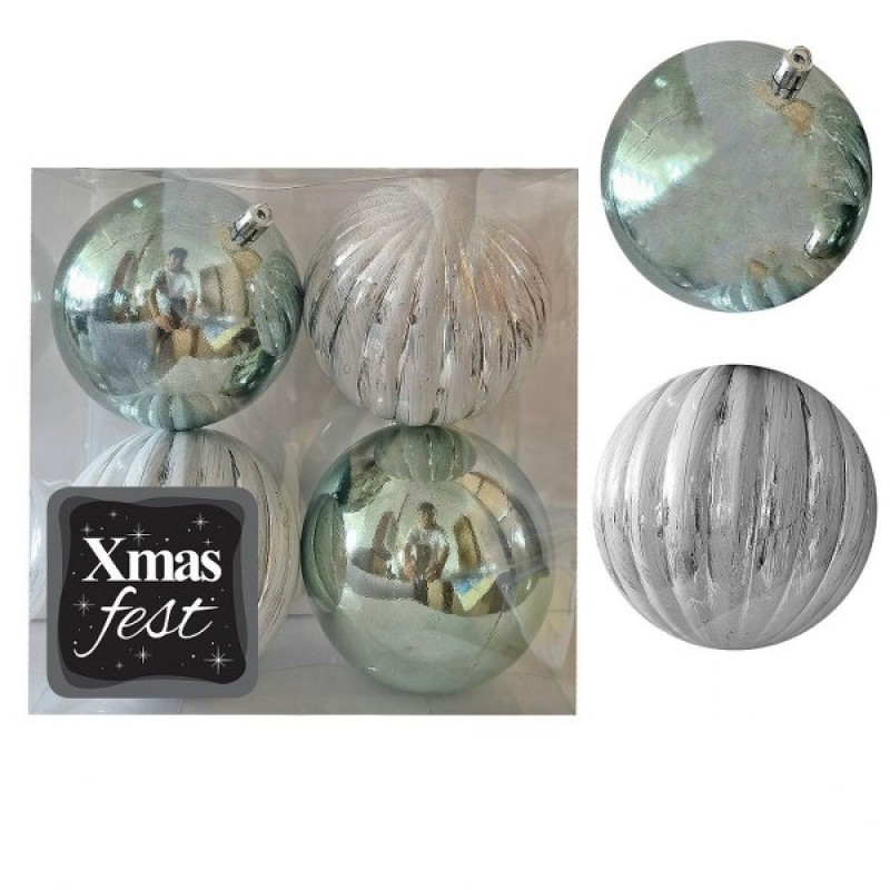 Σετ μπάλες 4 τμχ μιξ ανάγλυφες, αντικέ σε γκρι - πράσινο χρώμα από την Xmas fest - Διαστάσεις: Δ10εκ.