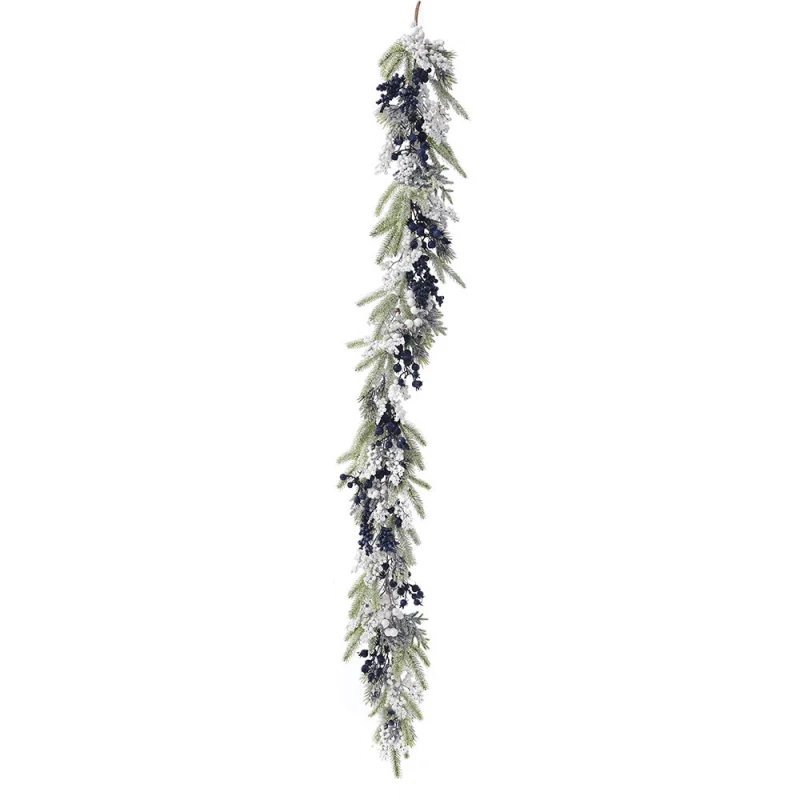 Χριστουγεννιάτικη διακοσμητική γιρλάντα χιονισμένη με μπλε και λευκά berries από την iliadis - Διαστάσεις: 180εκ.
