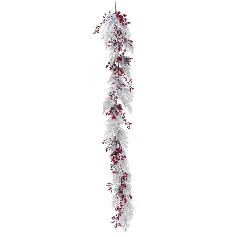 Χριστουγεννιάτικη διακοσμητική γιρλάντα χιονισμένη με κόκκινα berries από την iliadis - Διαστάσεις: 180εκ.