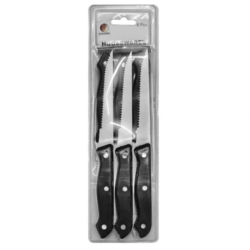 Μαχαίρια Σετ 6τμχ Πριονωτά Μαύρη Λαβή 22,5εκ. Homie 80-324