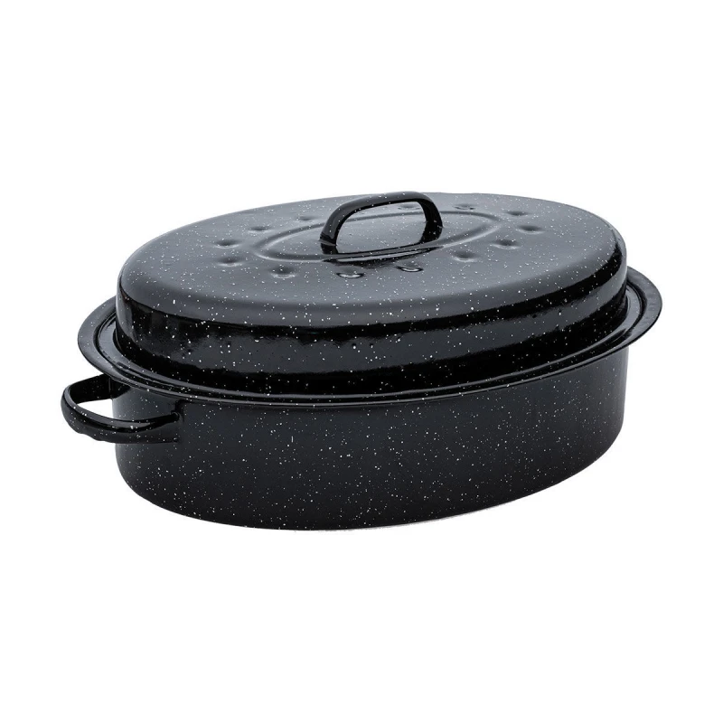 Οι γάστρες Enamel είναι κατασκευασμένες από υψηλής ποιότητας ανθρακούχο χάλυβα πάχους 0.4mm. Διαθέτουν εμαγιέ επίστρωση και μεταλλική σχάρα για υγιεινό ψήσιμο με λιγότερα λιπαρά. Προσφέρουν ομοιόμορφη κατανομή θερμότητας χάρη στην ανακύκλωση ατμού εντός του σκεύους. Με λαβές για άνετο κράτημα και μεταφορά και μεγάλη αντοχή σε γρατζουνιές, λεκέδες και χτυπήματα.