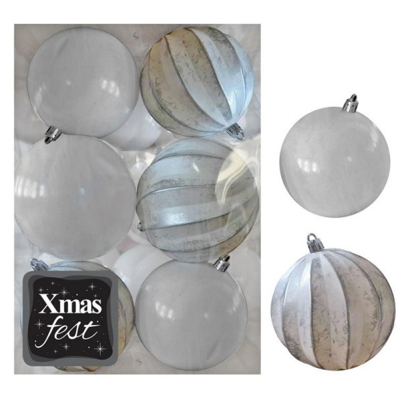 Σετ Μπάλες 6τμχ Μιξ Ανάγλυφες Αντικέ Λευκές Δ7εκ. Xmas fest 93-3570