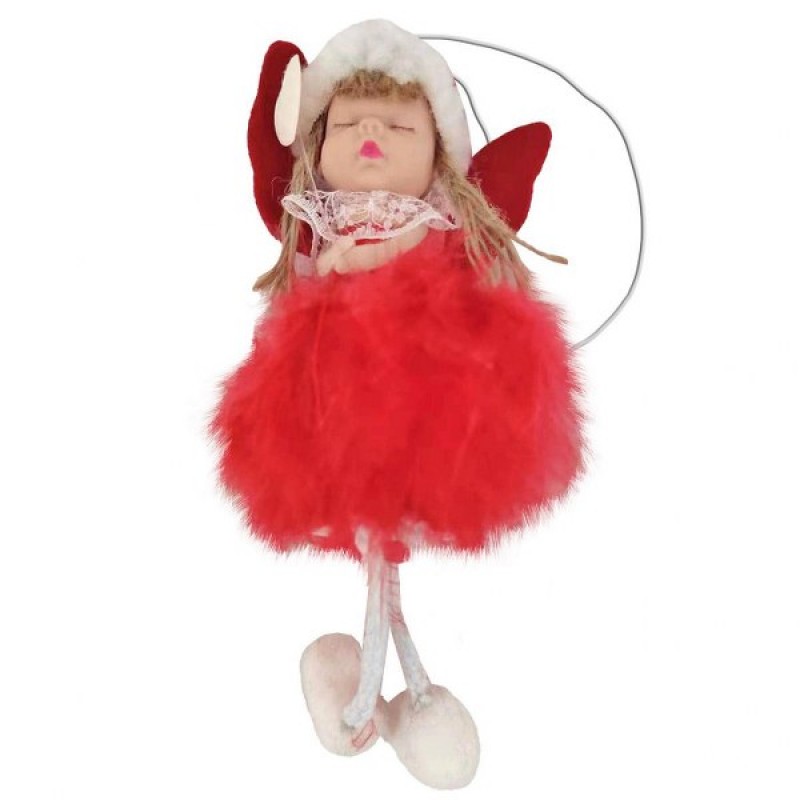 Χριστουγεννιάτικο στολίδι κρεμαστό αγγελάκι με φόρεμα σε κόκκινο χρώμα από την Xmas fest - Διαστάσεις: 20εκ.