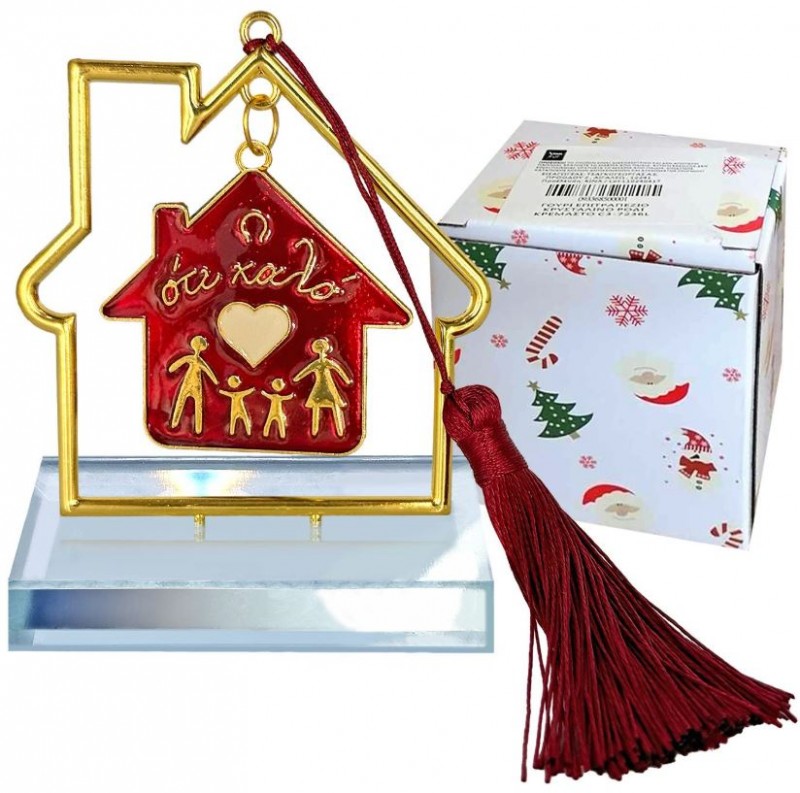 Επιτραπέζιο γούρι σπιτάκι με κρυστάλλινη βάση σε χρυσό - κόκκινο χρώμα από την Xmas fest.
