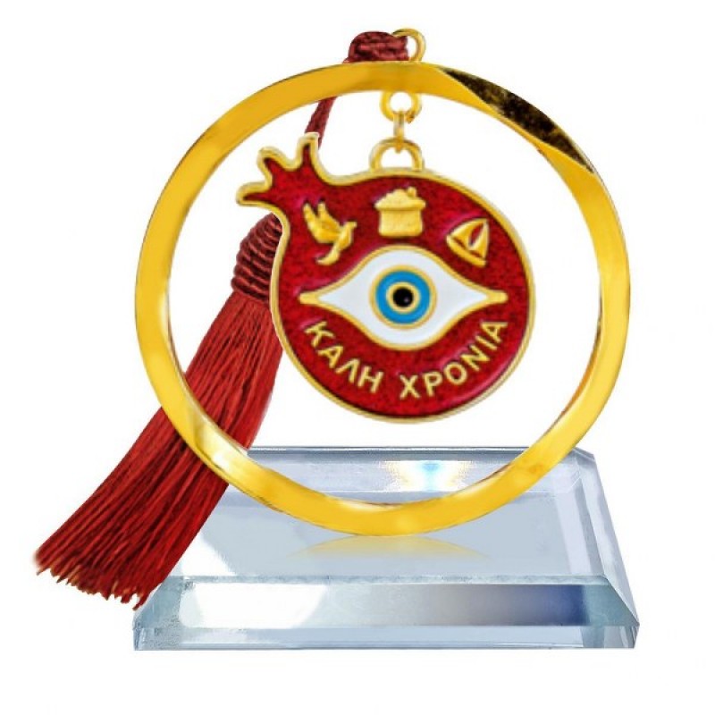 Επιτραπέζιο γούρι ρόδι με μάτι σε κρυστάλλινη βάση σε χρυσό - κόκκινο χρώμα από την Xmas fest.