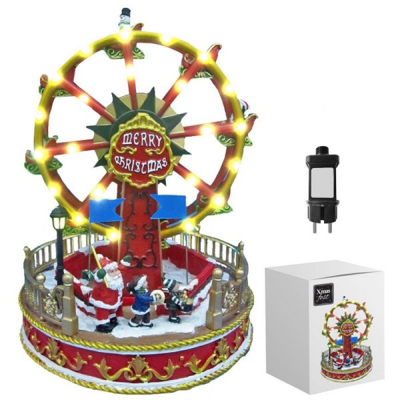 Χριστουγεννιάτικη παράσταση polyresin με ρόδα από λούνα παρκ, με φως, μουσική και κίνηση από την Xmas fest - Διαστάσεις: 22,5x30εκ. Περιλαμβάνει μετασχηματιστή και καλώδιο.