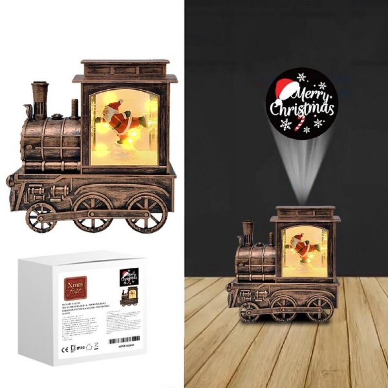 Φανάρι τρένο με λαμπάκια 10 led usb - μπαταρίας με παράσταση και προτζέκτορα από την Xmas fest - Διαστάσεις: 16x8,5x17εκ.