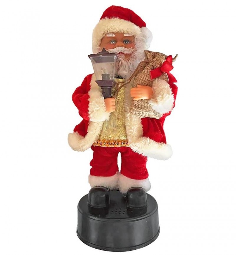 Άγιος Βασίλης με φανάρι μπαταρίας με μουσική, φως και κίνηση από την Xmasfest - Διαστάσεις: 30εκ.