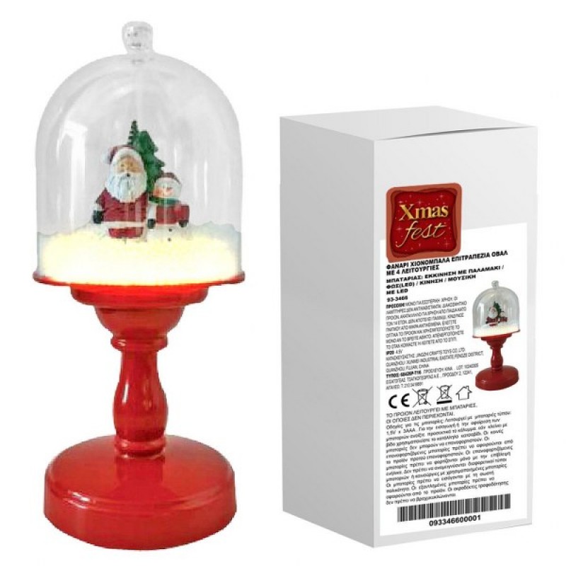 Χριστουγεννιάτικο φανάρι Άγιος Βασίλης με χιόνι και λειτουργίες όπως κίνηση, μουσική, φως led και εκκίνηση με παλαμάκι από την Xmas fest- Διαστάσεις: 13x13x30εκ.