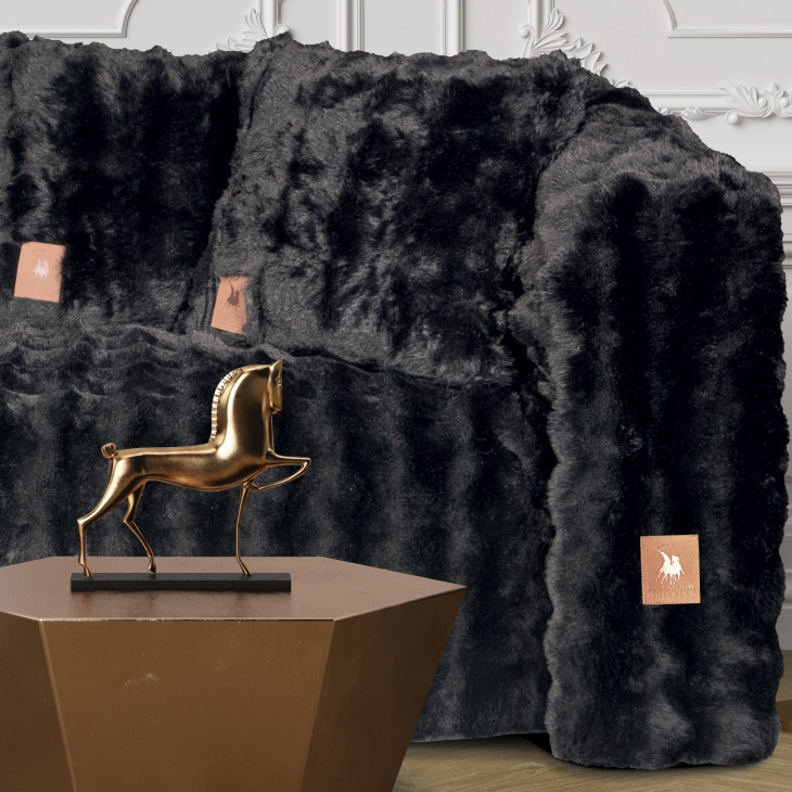 Ριχτάρι Γούνινο Faux Fur Τριθέσιος 180x300εκ. Premium 3938 Μαύρο Greenwich Polo Club