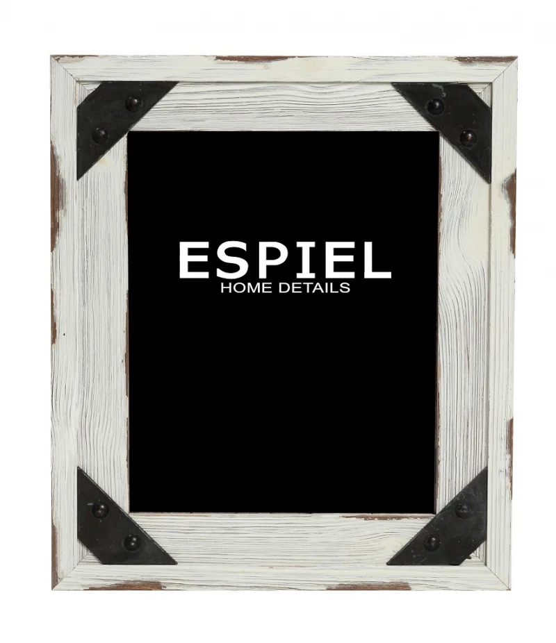 Ξύλινη κορνίζα σε λευκό αντικέ χρώμα με μεταλλικές λεπτομέρειες από την Espiel - Διαστάσεις: 28x1,5x33εκ. , Διάσταση φωτογραφίας: 20x25εκ.