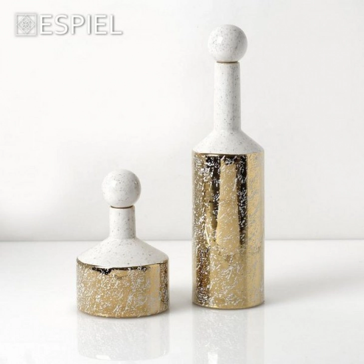 Διακοσμητικό μπουκάλι-μποτίλια κεραμικό σε λευκό-χρυσό χρώμα από την ESPIEL - Διαστάσεις: 11x31εκ.