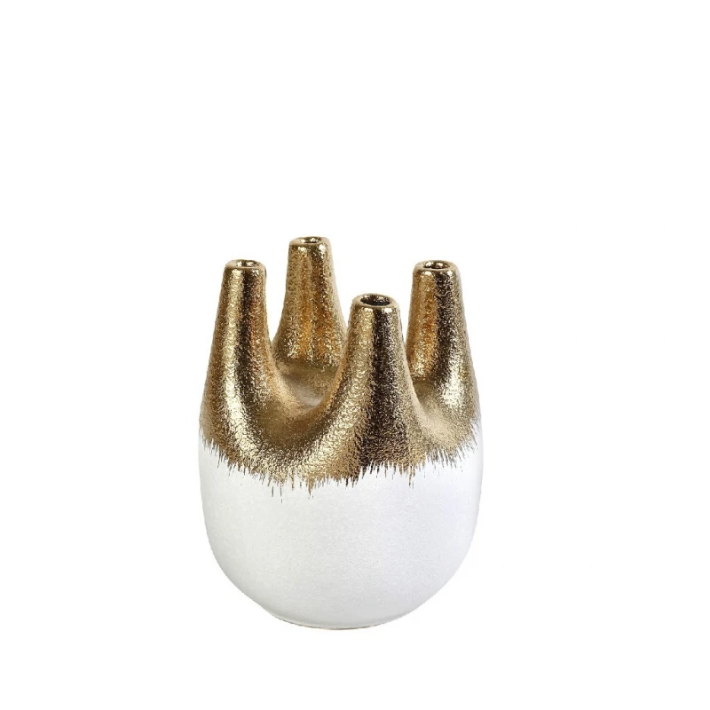 Βάζο κεραμικό 4 θέσεων σε λευκό-χρυσό χρώμα από την ESPIEL - Διαστάσεις: 15x15x18εκ.