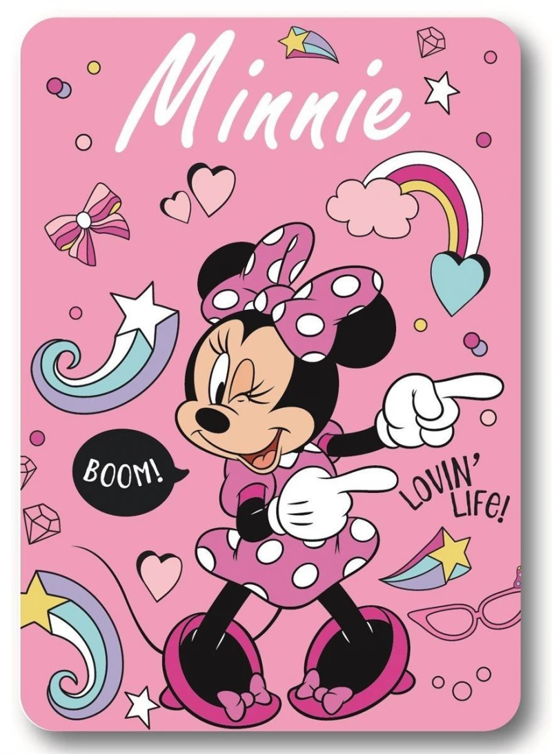Κουβέρτα Fleece, βάρους 220 gr/m2 κάτι που την καθιστά ζεστή, για την κούνια και την βόλτα με το μωρό σας, διαστάσεων 100x140εκ. Κατασκευασμένη από 100% Polyester ύφασμα, με σχέδιο ψηφιακής εκτύπωσης που απεικονίζει την αγαπημένη και διαχρονική ηρωίδα της Disney, Minnie Mouse. Συσκευασία polybag.