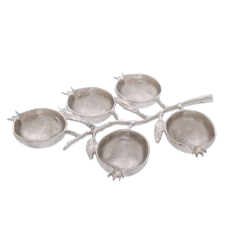 Διακοσμητικός δίσκος αλουμινίου με σχέδιο ρόδια σε ασημί χρώμα από την iliadis - Διαστάσεις: 37x26x4εκ.