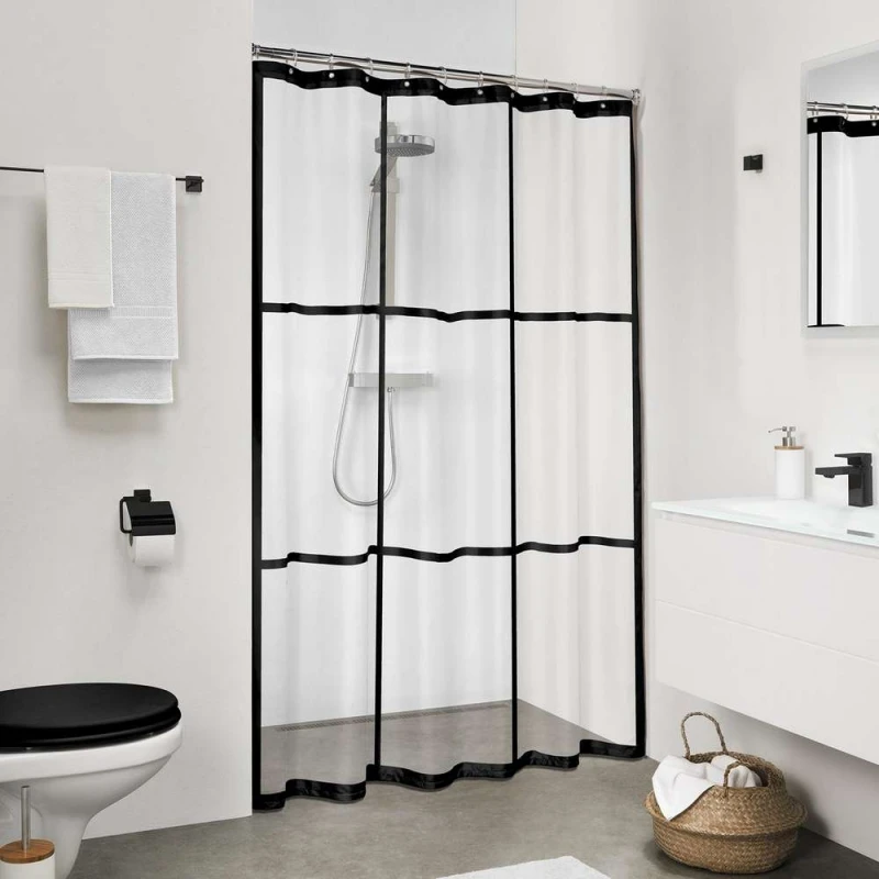 Νομίζατε ότι μια κουρτίνα μπάνιου δεν θα μπορούσε να είναι μοντέρνα και μοδάτη; Αυτή η κουρτίνα μπάνιου από τη σειρά Brix της Sealskin σας δείχνει ότι μπορεί να είναι! Είναι εμπνευσμένη από τη καμπίνα μπάνιου SOHO και αλλάζει το μπάνιο σας σε χρόνο μηδέν σε ένα τολμηρό σύνολο. Συν τοις άλλοις, κρατάει το μπάνιο σας στεγνό, κάτι που είναι πολύ ευχάριστο.Σχετικά με το προϊόν:Ανθεκτική: αυτή η κουρτίνα μπάνιου είναι κατασκευασμένη από ανθεκτικά υλικά και επομένως είναι μακράς διάρκειαςΜαύρες πινελιές: αυτή η κουρτίνα είναι εμπνευσμένη από τη καμπίνα μπάνιου SOHO και προσθέτει μια βιομηχανική εμφάνιση στο μπάνιο σαςΠρακτική: με αυτή την κουρτίνα ντους, το βρεγμένο πάτωμα του μπάνιου ανήκει στο παρελθόνΕύκολη τοποθέτηση: κρεμιέται εύκολαΣτη συσκευασία δεν συμπεριλαμβάνονται οι κρίκοι κουρτίναςΟι κορυφαίες συμβουλές μας: Η κουρτίνα μπάνιου παραμένει όμορφη για ακόμη περισσότερο χρόνο αν την σκουπίσετε με ένα νωπό πανί μετά το ντους. Εάν χρησιμοποιείτε την κουρτίνα σας σε μπανιέρα, αφήστε την να στεγνώσει έξω από αυτή. Μετά το ντους, κρεμάστε πάντα καλά την κουρτίνα για να στεγνώσει γρήγορα, ώστε να παραμείνει φρέσκια για περισσότερο χρόνο. Για να διατηρήσετε τη θερμότητα στο χώρο του ντους, κρεμάστε την κουρτίνα σας έτσι ώστε το κάτω μέρος της να είναι κοντά στο έδαφος