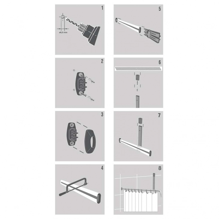Μετρήστε και προσαρμόστε: οι τρεις ράβδοι των 90 cm καθώς και το στήριγμα οροφής μήκους 60 cm, κόβονται εύκολα στο κατάλληλο μέγεθος