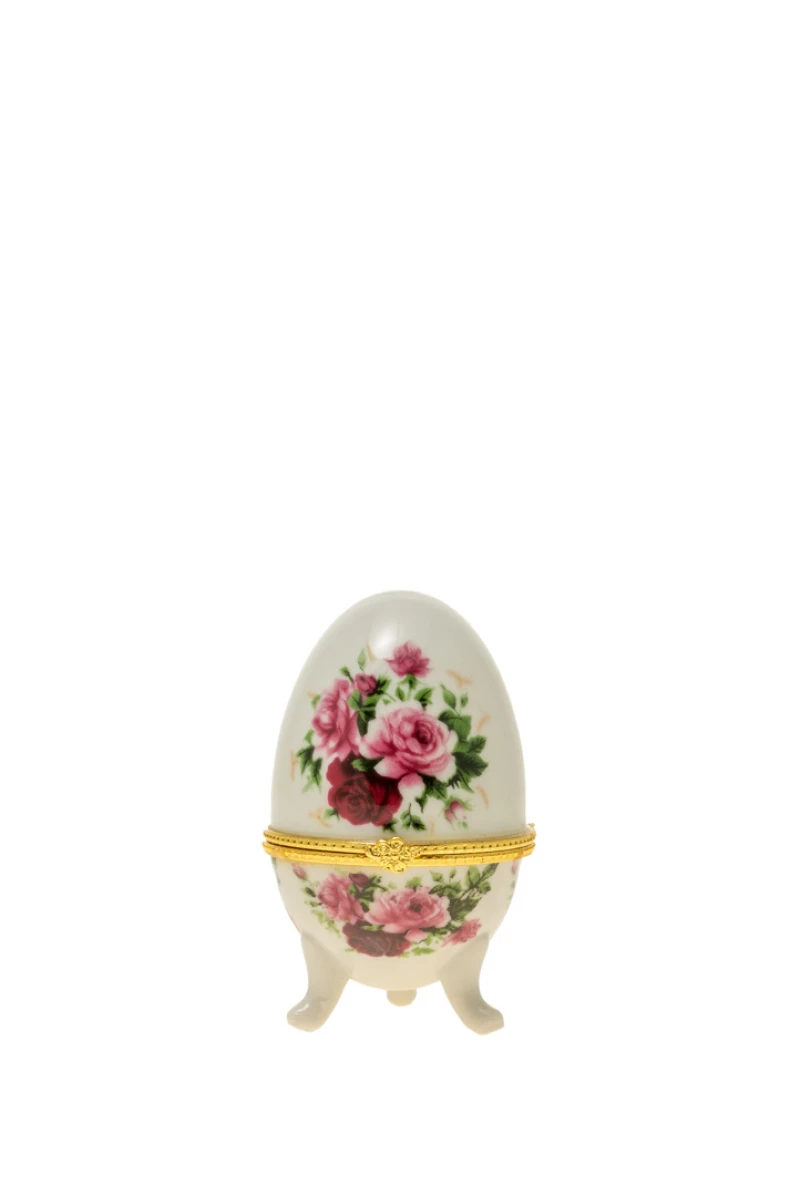 Διακοσμητικό επιτραπέζιο αυγό, πορσελάνης με σχέδιο τριαντάφυλλα σε λευκό - ροζ χρώμα με χρυσή λεπτομέρεια από την Zen Collection - Διαστάσεις: 5x7,5εκ.