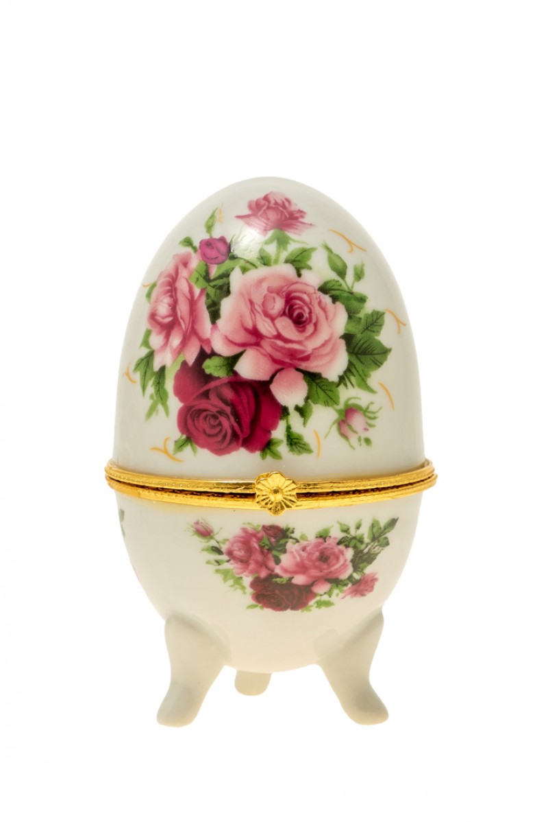 Διακοσμητικό επιτραπέζιο αυγό, πορσελάνης με σχέδιο τριαντάφυλλα σε λευκό - ροζ χρώμα με χρυσή λεπτομέρεια από την Zen Collection - Διαστάσεις: 6x10εκ.